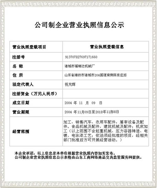 諸城市福瑞達(dá)機(jī)械有限公司簡介
